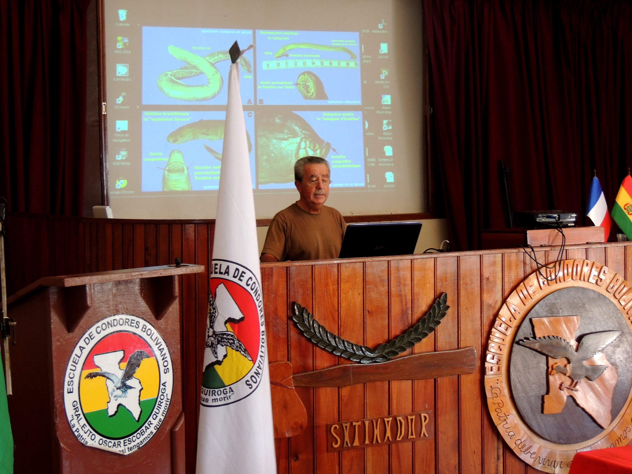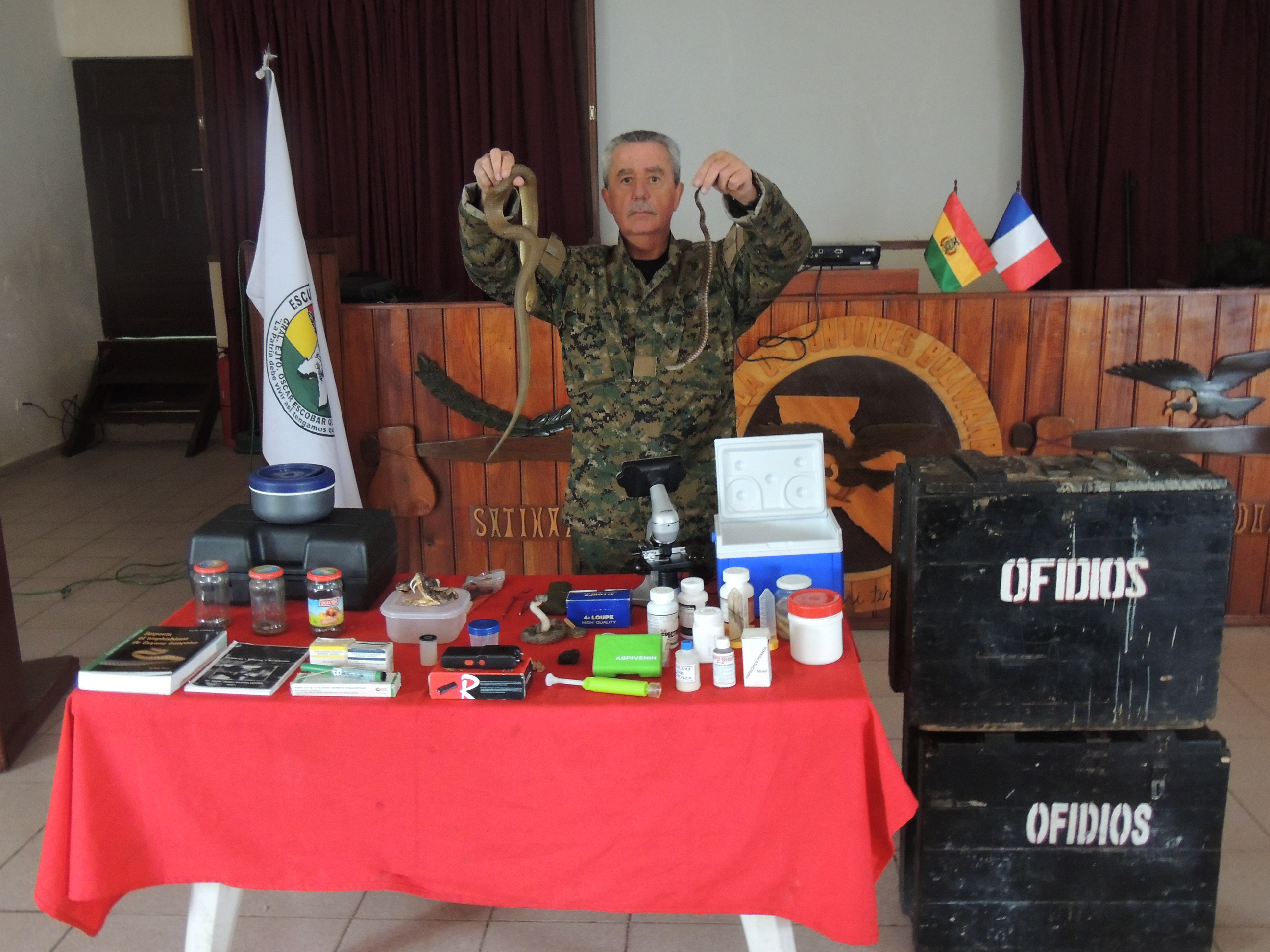 06-14 septembre 2014 : formation à l’ESCONBOL de Sanandita (École des Forces Spéciales de l’Armée de Terre bolivienne (Chaco – sud de la Bolivie) sur la psychologie en milieu hostile, les animaux parasites et venimeux.