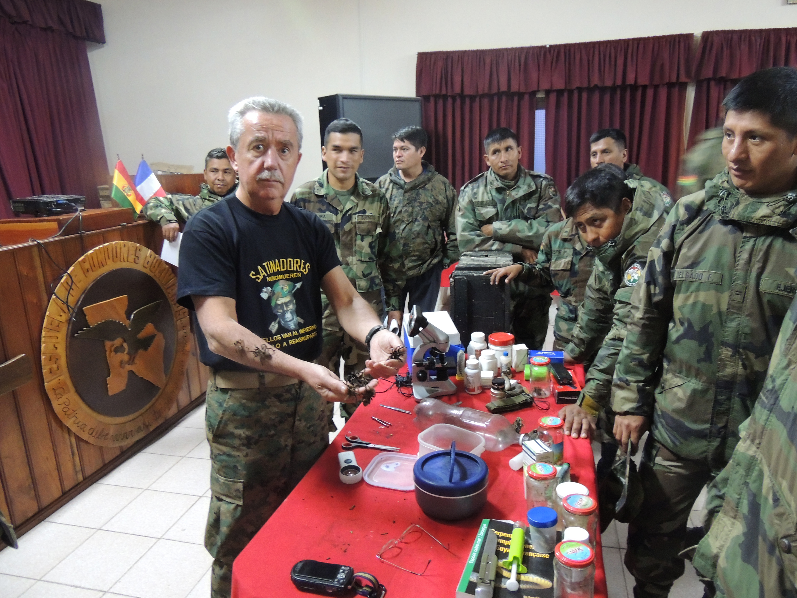 06-14 septembre 2014 : formation assurée aux instructeurs de l’école des forces spéciales de l’Armée de Terre bolivienne, nommée ESCONBOL (École des Condors de Bolivie). Ce camp d’entraînement est situé à Sanandita, à près de 40 km de Yacuiba (frontière avec l’Argentine). La formation a porté sur la psychologie en milieu hostile et sur les animaux parasites et venimeux du Chaco et d’Amazonie.