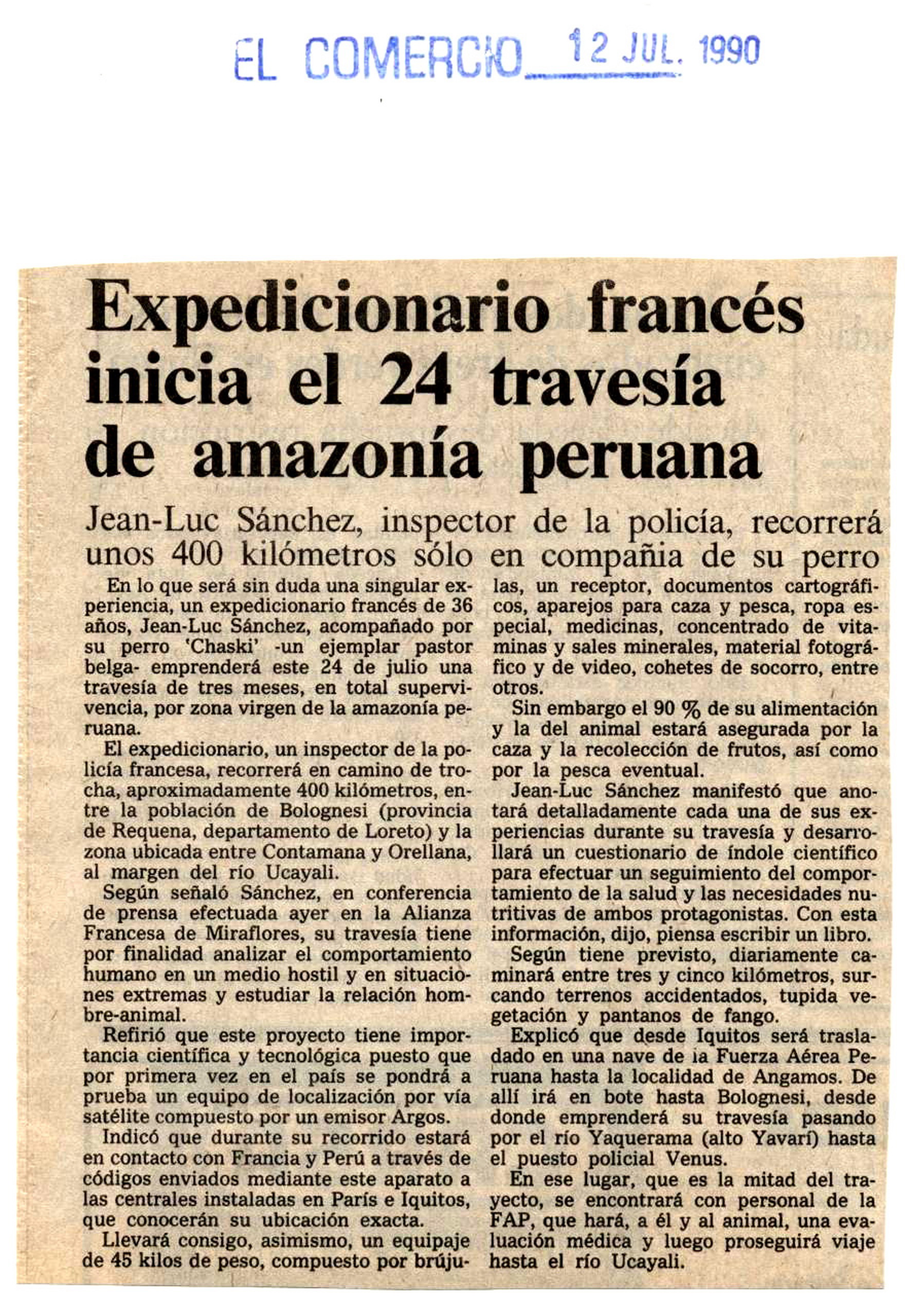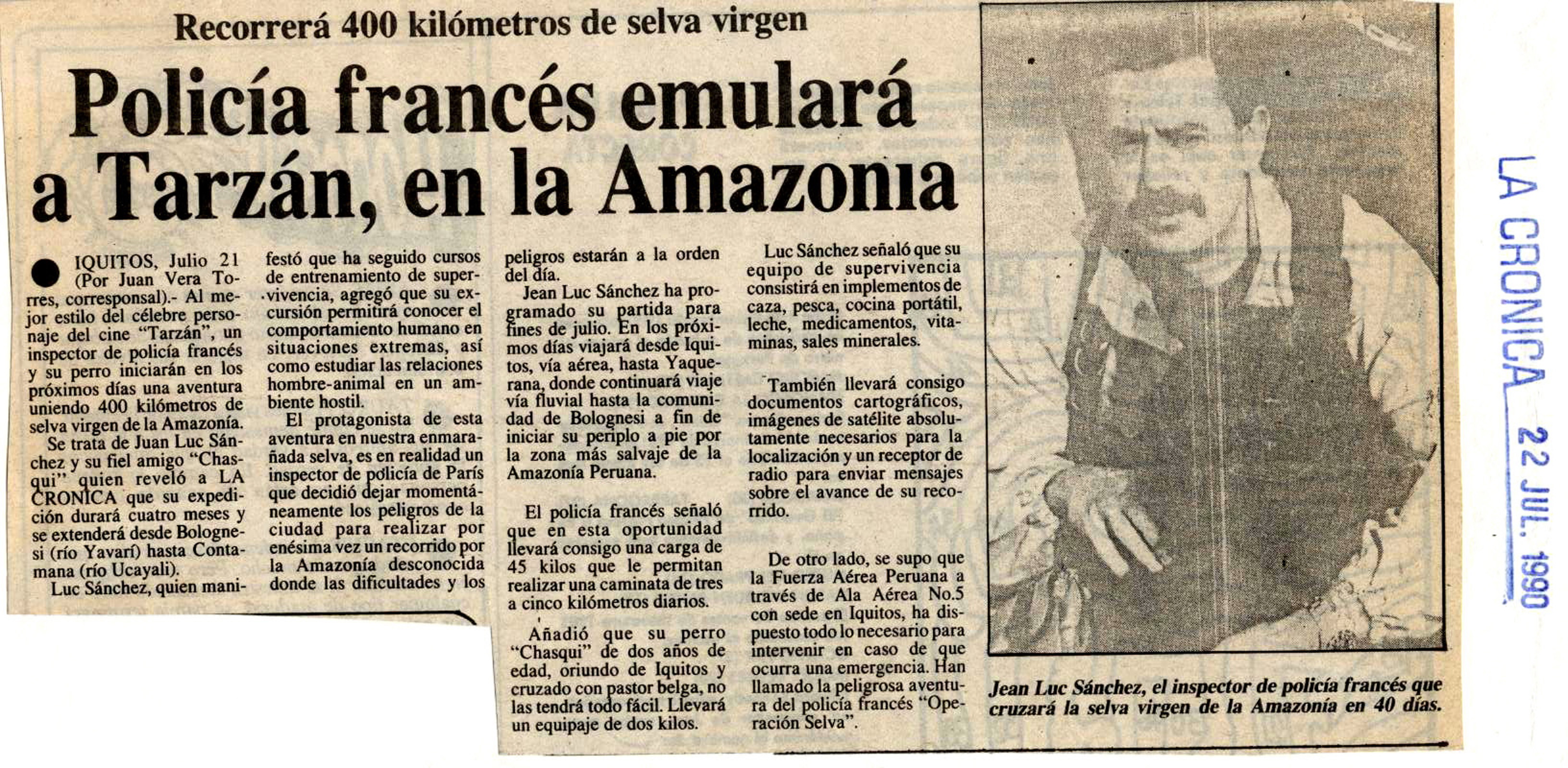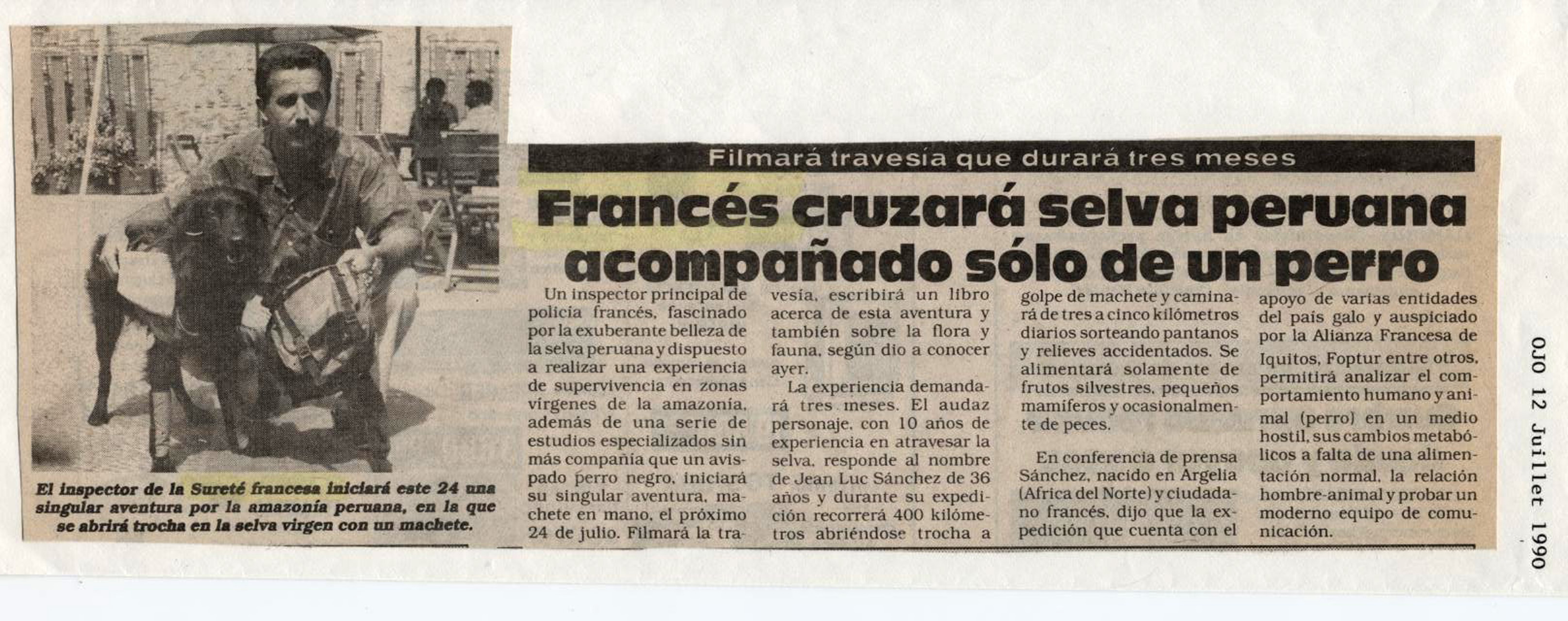 Quelques articles de presse « Opération Selva Duo ». Midi Libre 02 01 2002 Sétois aux 4 coins du Monde 2 El comercio 12 07 1990 expedicionario francés inicia El comercio 12 07 1990 Francés atravesara la selva vi OJO 12 07 1990 Francés cruzara selva peruana El comercio 2 07 1990 Policia francés emulara a Nice Matin 15 08 1990 OJO 14 12 1990 Perro ayudo a vivir a Tarzan G M T Detect languageAfrikaansAlbanianArabicArmenianAzerbaijaniBasqueBelarusianBengaliBosnianBulgarianCatalanCebuanoChichewaChinese (Simplified)Chinese (Traditional)CroatianCzechDanishDutchEnglishEsperantoEstonianFilipinoFinnishFrenchGalicianGeorgianGermanGreekGujaratiHaitian CreoleHausaHebrewHindiHmongHungarianIcelandicIgboIndonesianIrishItalianJapaneseJavaneseKannadaKazakhKhmerKoreanLaoLatinLatvianLithuanianMacedonianMalagasyMalayMalayalamMalteseMaoriMarathiMongolianMyanmar (Burmese)NepaliNorwegianPersianPolishPortuguesePunjabiRomanianRussianSerbianSesothoSinhalaSlovakSlovenianSomaliSpanishSundaneseSwahiliSwedishTajikTamilTeluguThaiTurkishUkrainianUrduUzbekVietnameseWelshYiddishYorubaZulu AfrikaansAlbanianArabicArmenianAzerbaijaniBasqueBelarusianBengaliBosnianBulgarianCatalanCebuanoChichewaChinese (Simplified)Chinese (Traditional)CroatianCzechDanishDutchEnglishEsperantoEstonianFilipinoFinnishFrenchGalicianGeorgianGermanGreekGujaratiHaitian CreoleHausaHebrewHindiHmongHungarianIcelandicIgboIndonesianIrishItalianJapaneseJavaneseKannadaKazakhKhmerKoreanLaoLatinLatvianLithuanianMacedonianMalagasyMalayMalayalamMalteseMaoriMarathiMongolianMyanmar (Burmese)NepaliNorwegianPersianPolishPortuguesePunjabiRomanianRussianSerbianSesothoSinhalaSlovakSlovenianSomaliSpanishSundaneseSwahiliSwedishTajikTamilTeluguThaiTurkishUkrainianUrduUzbekVietnameseWelshYiddishYorubaZulu Text-to-speech function is limited to 200 characters Options : History : Feedback : Donate Close